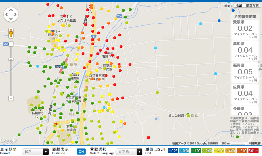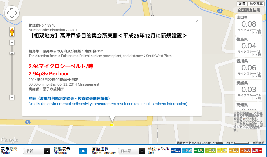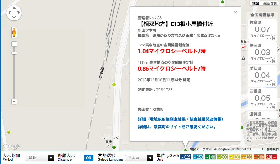 【キャプチャ画像リンク:同上、福島県放射能測定マップ】