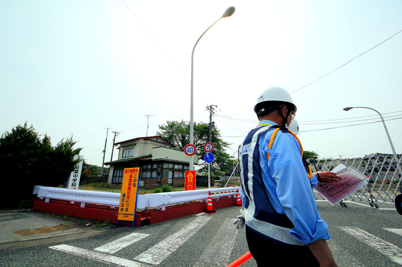 "Traffic gate(with two security guards)" Futaba, Fukushima (撮影:東間 嶺)