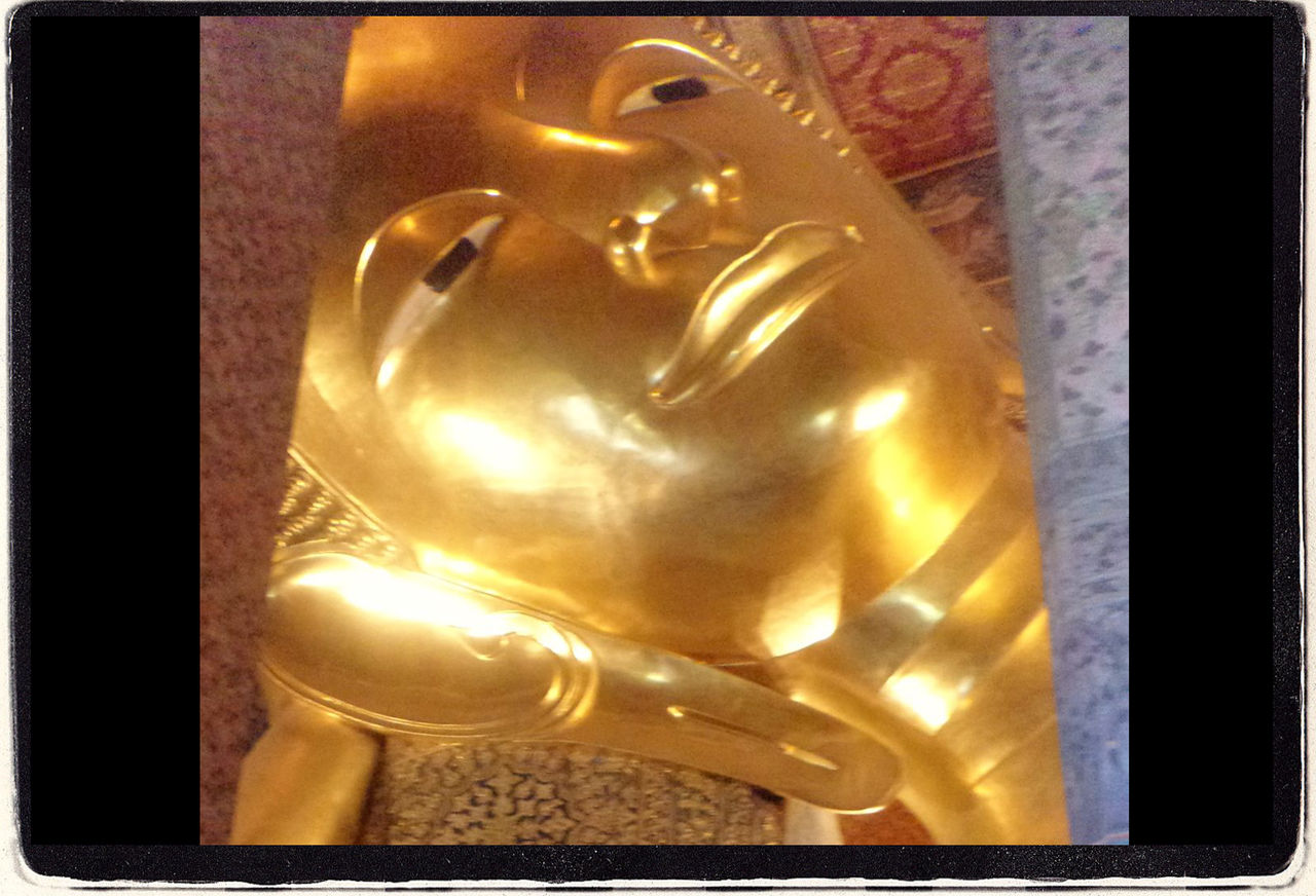 そろそろ団体の観光客も引き上げる時間だったが、世界的な観光の名所だけあって、お堂の中は見学者で混みあっていた。中を一周歩き、他の参拝者に混ざって涅槃仏の背面に置かれた108個のブロンズの鉢にお賽銭を入れると、外に出た。