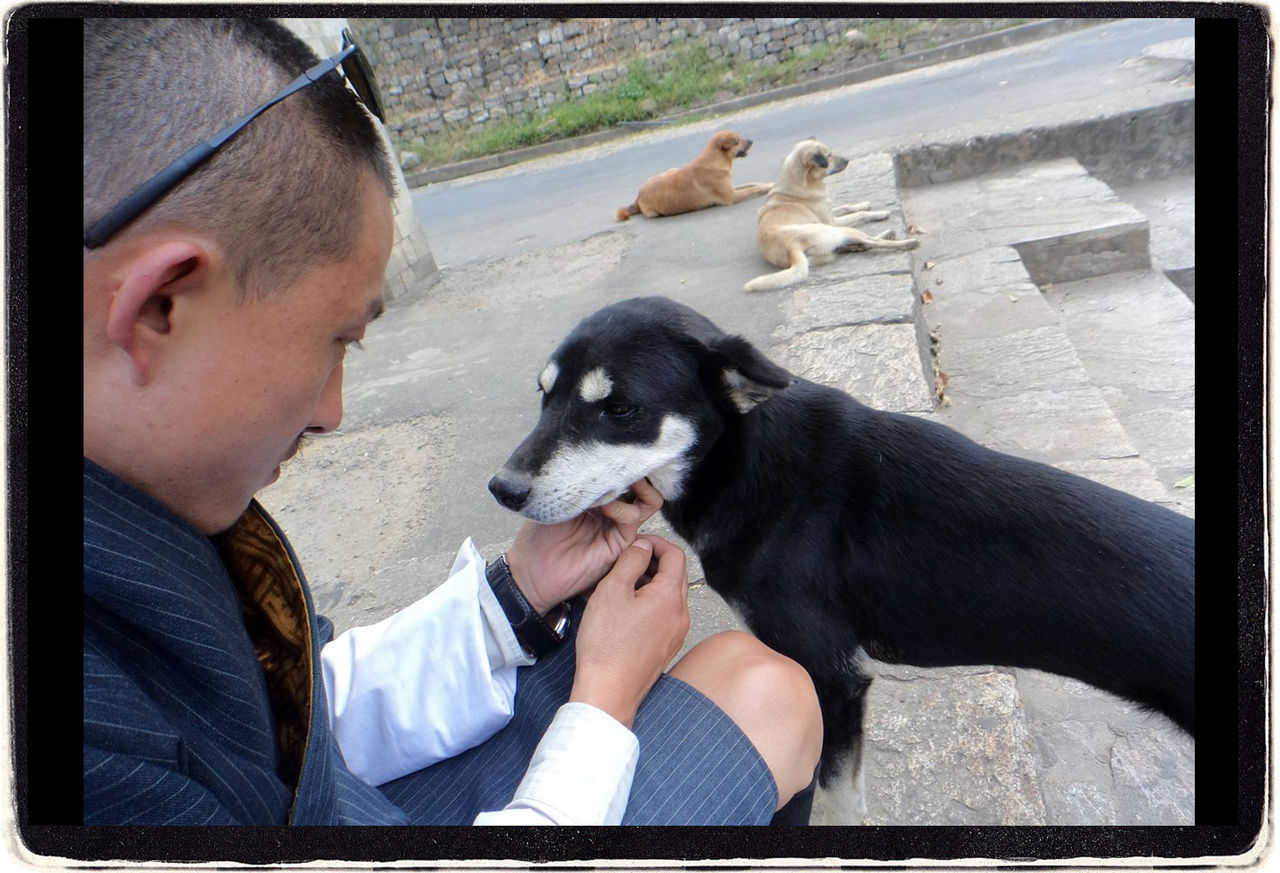まだ時間は山ほどあった。ネテンが犬と遊び始めた。仏教国であるブータンでは動物は大切に扱われる。捕まえて殺処分になどしないから、どこにでも野良犬がいる。