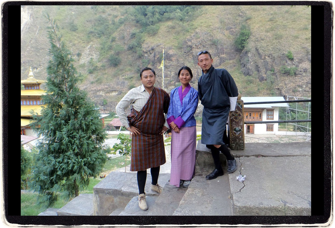 寺院と役所を見学する予定だったので、翌日はキラを着用した。上手に着るのは難しいし、身に付けていると、ちょっと照れくさい。それでも、これを着て黙っていれば、ぱっと見た感じはブータン人で、目立たなくていい。