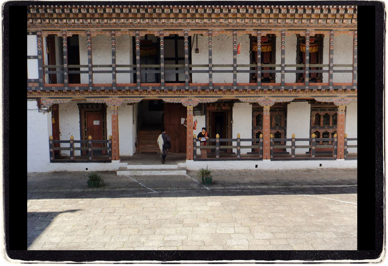 ゾンは見晴らしのよい丘の上に建っていて、吹き渡る風がさわやかだ。石畳の中庭を取り囲むように建てられた大きな二階建ての木造建築で、どう見ても宗教設備か歴史的建造物にしか見えないが、行政サービスを行う普通の役所だというのがちぐはぐな感じだ。職員や関係者がたまに中庭を横切るだけで、ひっそりとしている。