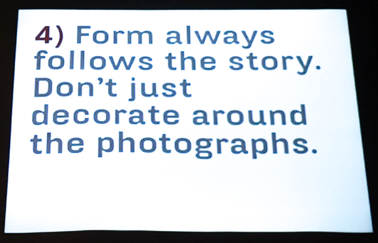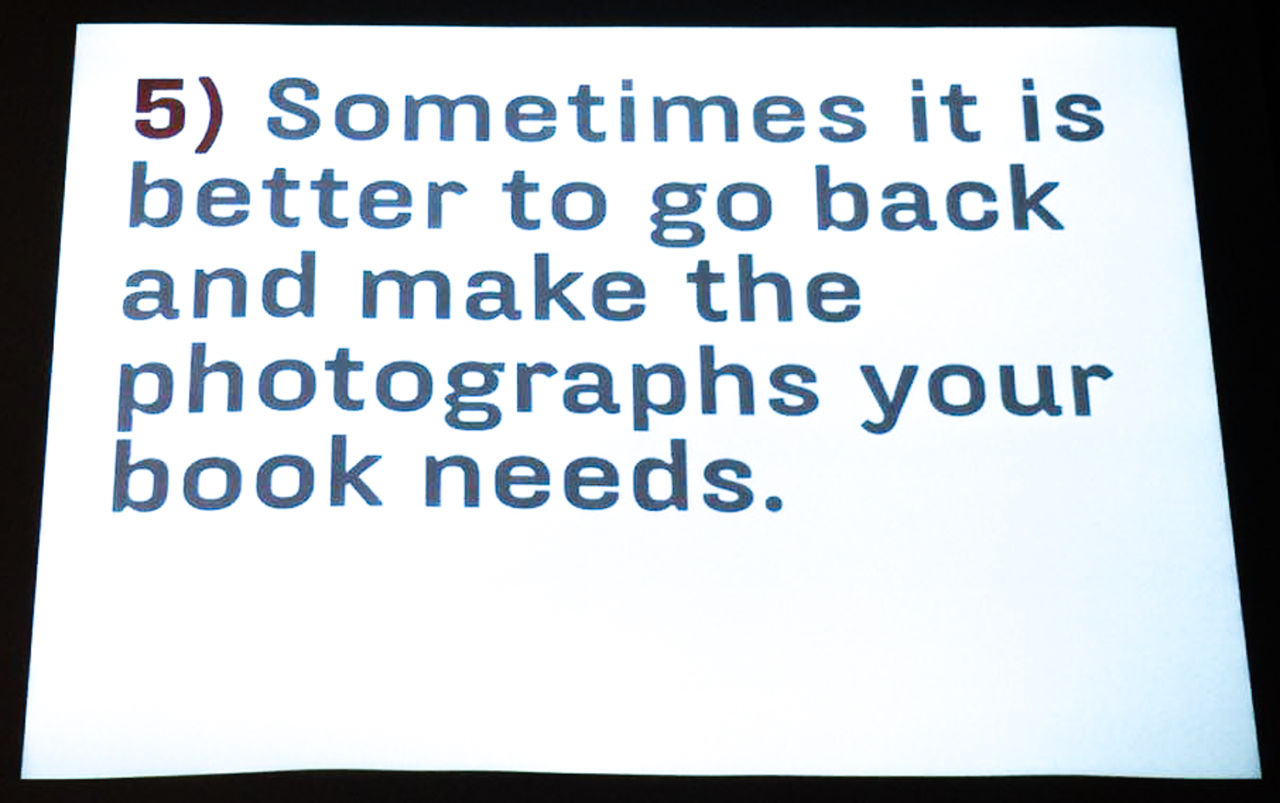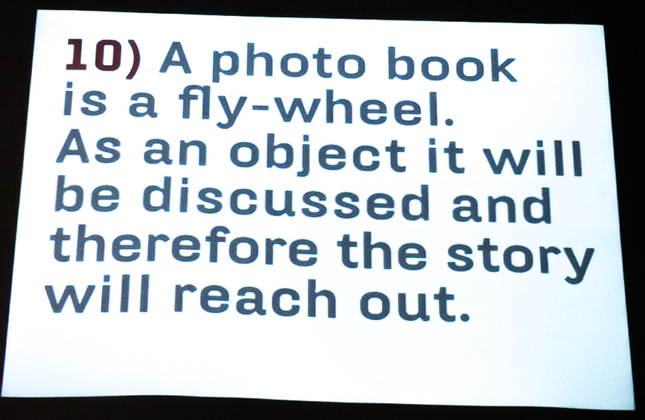 ◆ トゥーン氏は、写真集がストーリーを持たなければならない必要性について、何度も強調していた。(視覚的な言語たる)写真は、情報化社会における進化した意志伝達手段であり、今後ますます重要なコミュニケーションツールとなる。そして、写真集は、その増殖し続けるイメージの断片を集約し、人々が共有可能なものとして意味を与えることができる。写真家が観察し、解釈した世界の姿を他者へ伝え、分かち合うためには、ストーリーが必要なのだ。