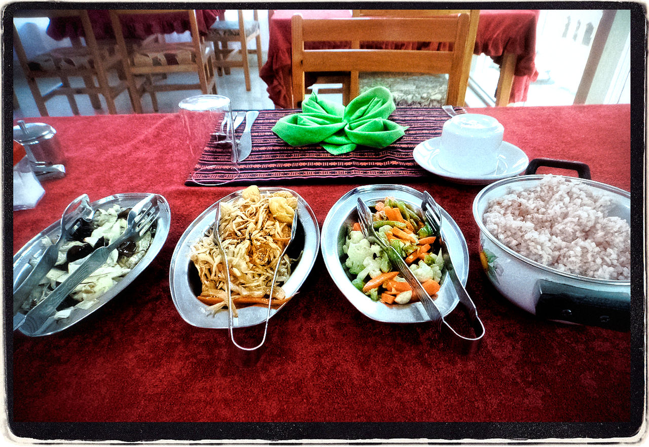 もう午後3時近くて昼食には遅い時間だったけれど、レストランで食事になった。ジャムソーもネテンもお腹がペコペコだと言って、信じられないほどたくさん食べた。私もつられて大食いしそうになるが、やはり彼らほどは食べられない。