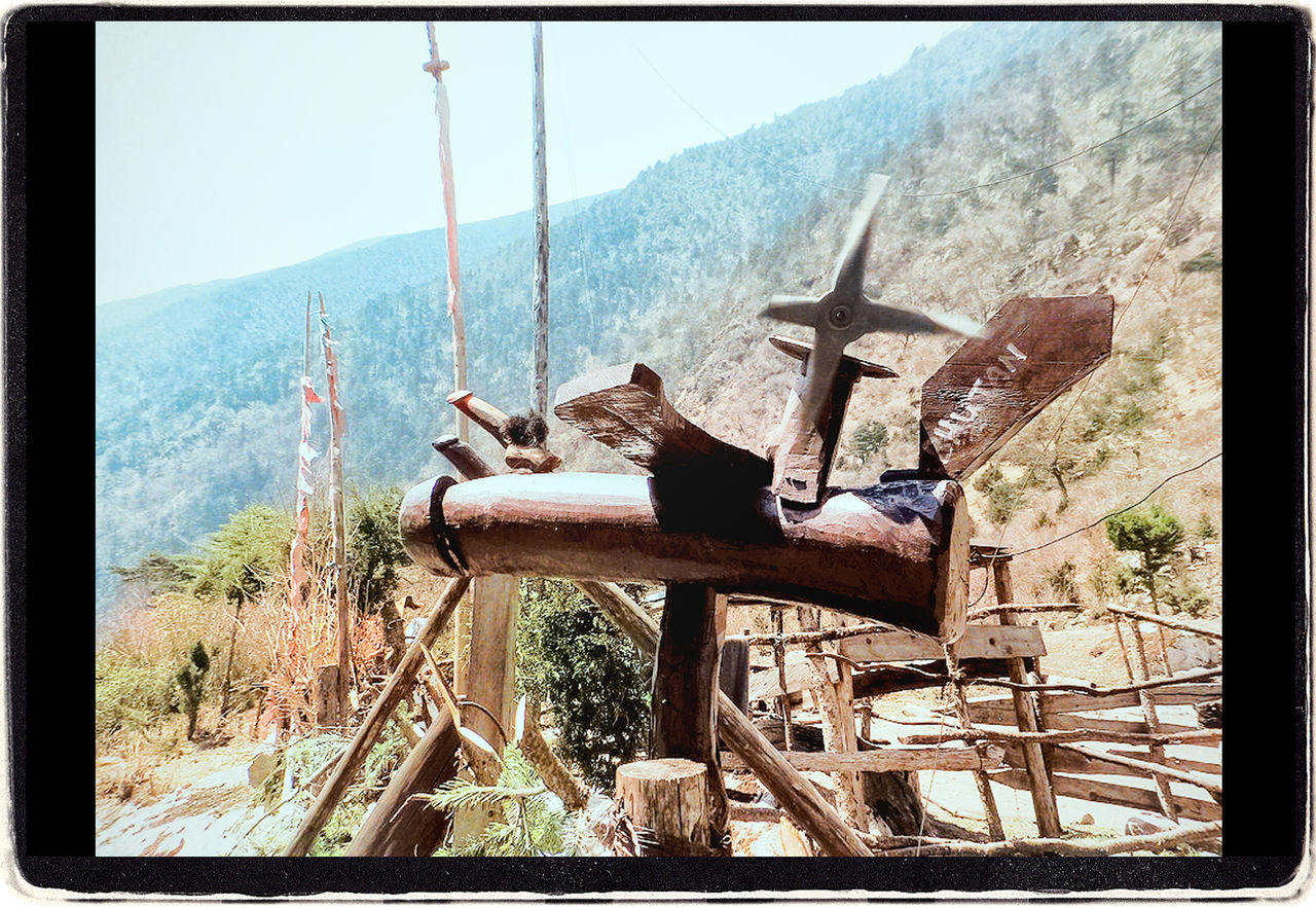 駐屯地といってもそんなに真面目くさった雰囲気ではなく、入り口のテラスのところにこんなものがあった。風向計なのだろうか。何とも言えないデザインだけれど、これはブータンでは災難除けのシンボルなのだという。災難を避けるというなら、軍の施設にはうってつけだ。