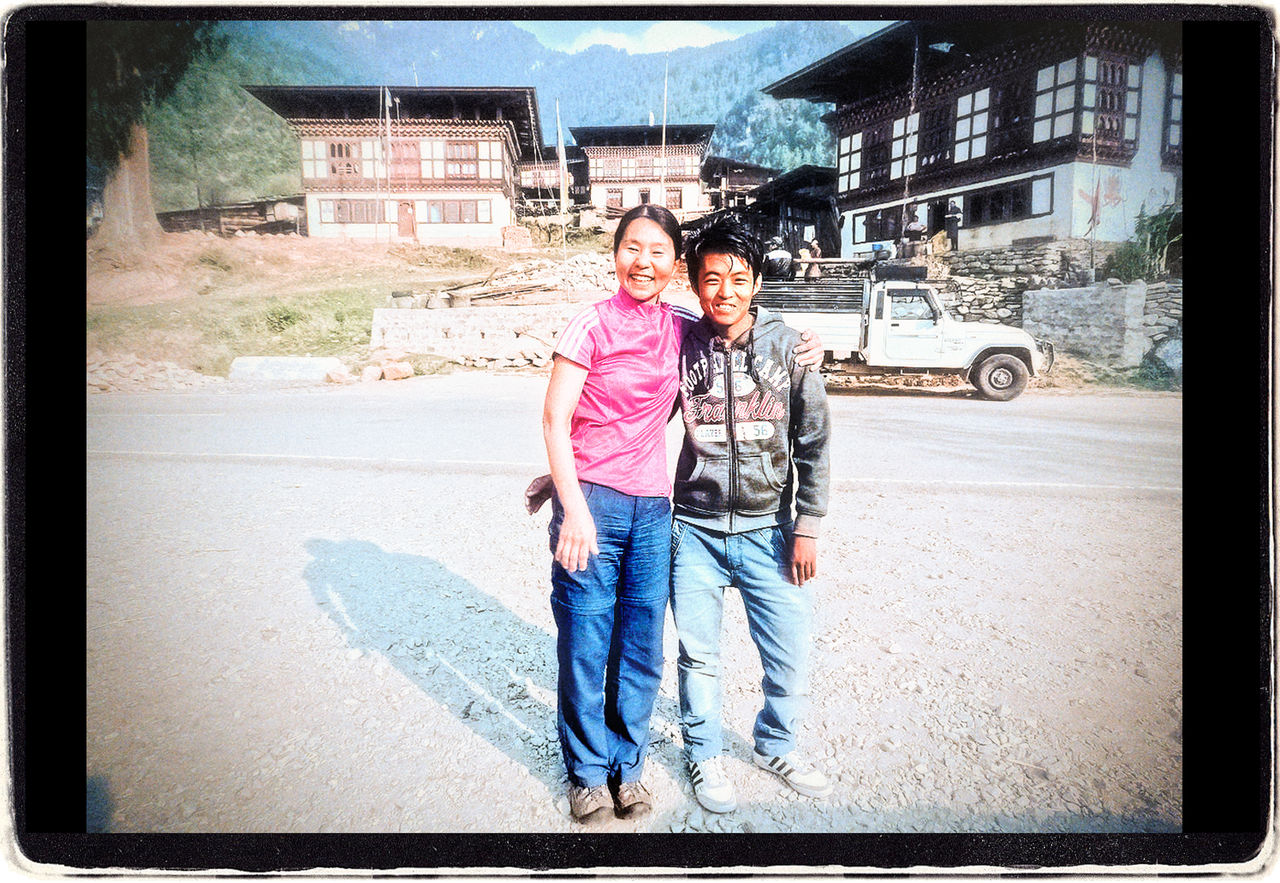 朝7時、ネテンの運転するSUVでパロのホテルを出発した。西へ向かって30分ほど走ったところに集落があり、ネテンはそこでSUVを停めた。一年半前のトレッキングの時にアシスタントをしてくれたギレが待っていた。懐かしくて、思わず記念撮影する。もう会うことは無いだろうと思っていたけれど、行動さえすれば、またこうやって会うこともできるのだ。
