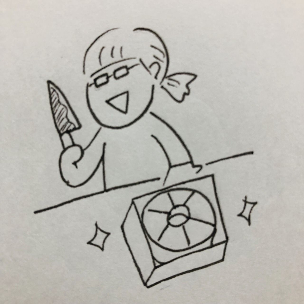 フォローのため、おやつのバウムクーヘンを切り分ける。