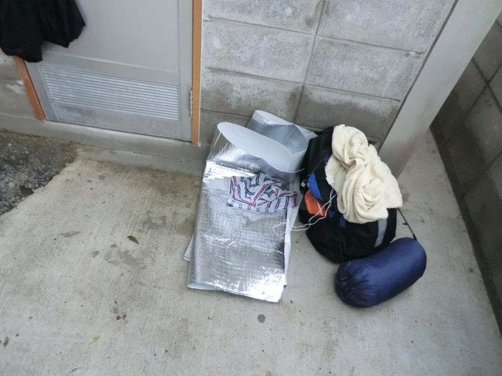 そこのトイレの裏で早めの就寝の準備をした。暗くなることを怖れていたが、沖縄の夕べはゆっくりと流れていた(でも、真っ暗になるとガチコワ!)。10センチあるかないかのアホな屋根の下で横になりながら、時たま顔にしぶく小雨とやぶ蚊と壕の前でひたすらお祈りをする地元住民男性に眠りを邪魔されながら、夜が更けていった。それが沖縄初日である。